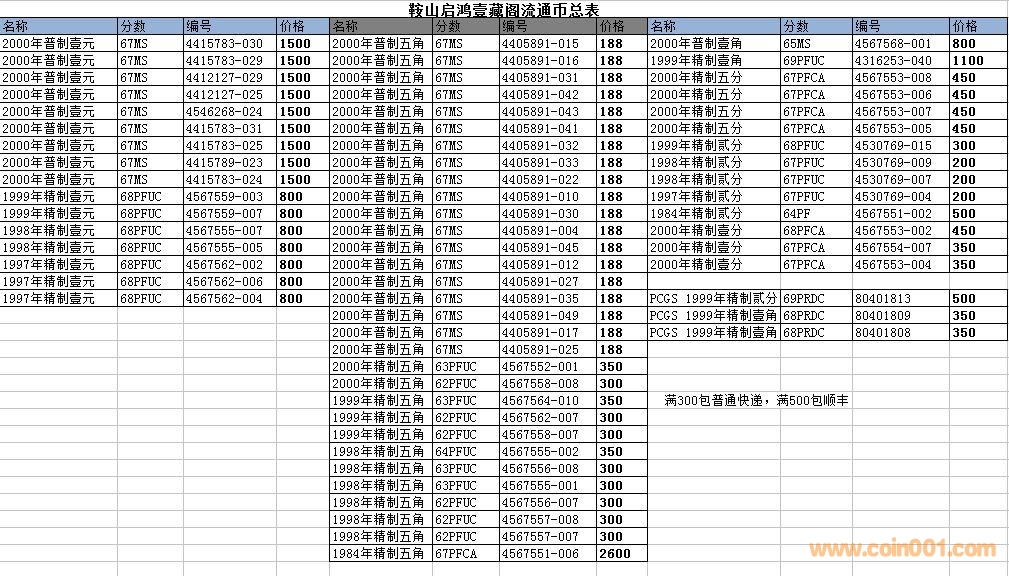 評級普通(精制)紀念幣交易
