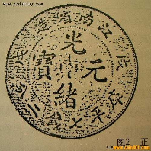 圖1所示為“廣東七二反版”銀幣。清光緒十五年(1889年)廣東省曾鑄造光緒元寶銀幣一種,設(shè)計(jì)者將英文置于錢幣正面“光緒元寶”4字之外圈,受到一些清政府官員的非議,認(rèn)為“將洋文列于中國(guó)年號(hào)之內(nèi),體制尚有未合,應(yīng)請(qǐng)飭令該督(兩廣總督)將洋文改鏨蟠龍之外,以廣東省造庫(kù)平七錢二分漢文改到正面,其半元以下銀元以次照改,較為妥協(xié)”。清政府采納了上述意見,將錢幣正面的英文移至背面,這種被稱為“廣東七二反版”的銀幣遂即停鑄。此錯(cuò)版銀幣沒有正式發(fā)行,存世很少,百年來一直是錢幣收藏者關(guān)注的焦點(diǎn)。