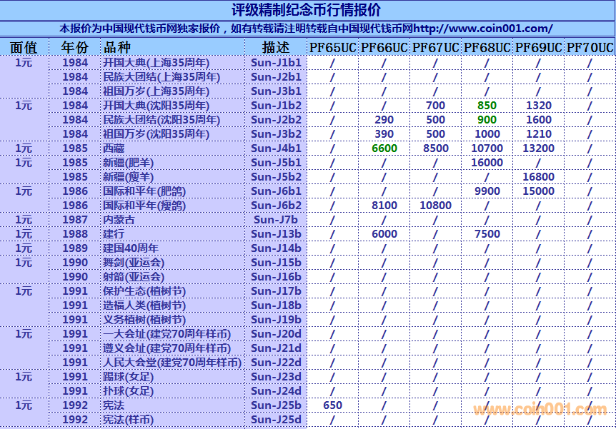 評級普通(精制)紀念幣交易