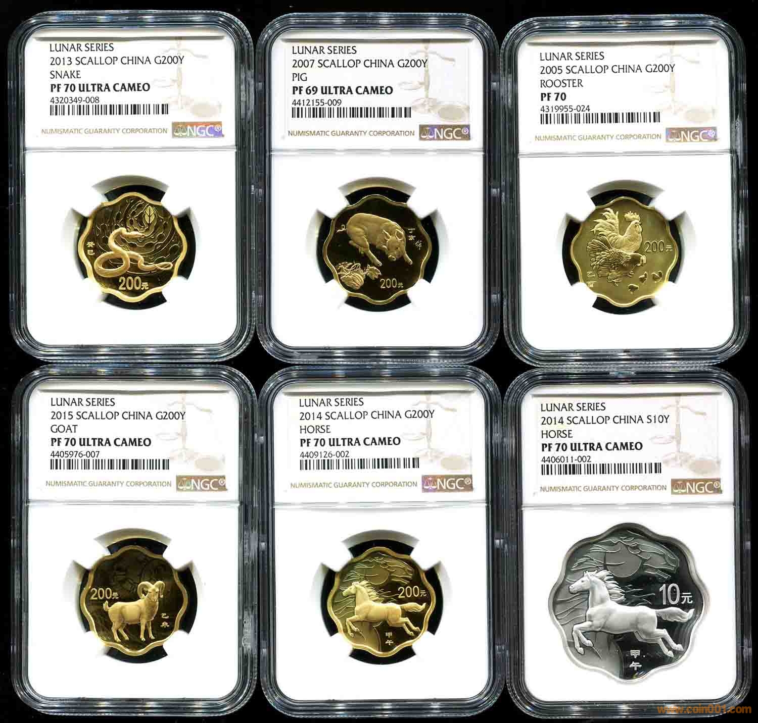 新年優(yōu)惠售;NGC 70/69級 2005年梅花雞金幣 、2007年梅花豬金幣 、2013年梅花蛇金幣 、2014年梅花金銀馬、2015年梅花羊金幣