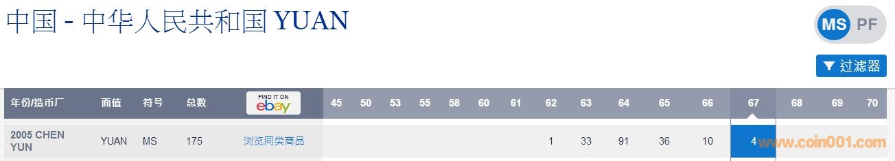 陳云MS67,冠軍分,數(shù)據(jù)庫(kù)只有4枚,1600出;
