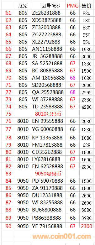 評級普通(精制)紀念幣交易