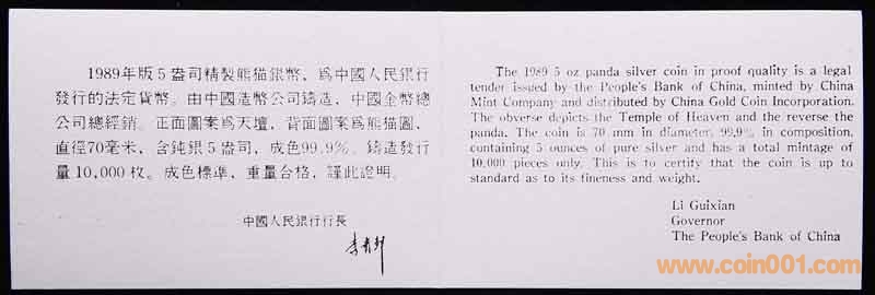 1989年熊貓5盎司精制銀 ..