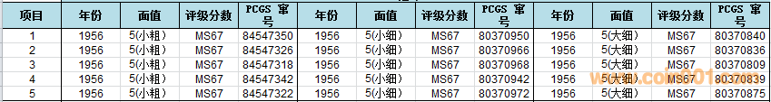 1956年5分(小星粗字)的評級難度非常高,無論是PCGS還是NGC目前所見最高分MS67,主要原因所有的錢幣焦點區(qū)域有發(fā)絲狀的鑄紋,對于評級分?jǐn)?shù)的影響極大,這次送評的錢幣經(jīng)過精心挑選,品質(zhì)屬于批次中狀態(tài)最好的錢幣,值得大家擁有!