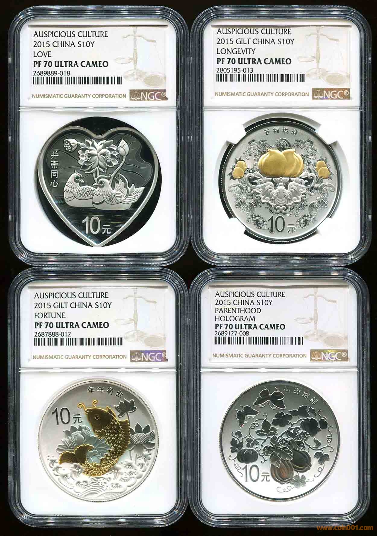 電聯(lián)確認15年吉祥文化四枚銀幣滿分套裝 一套 帶證書 帶盒子 包順豐 包品相包安全到手 款到發(fā)貨