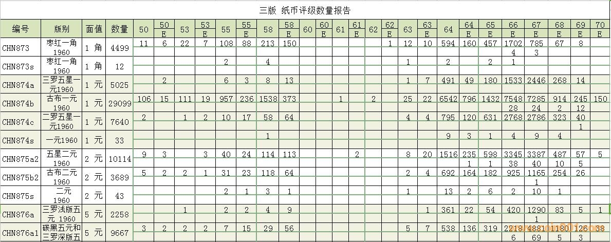 PMG紙幣評級數(shù)量報告 ..