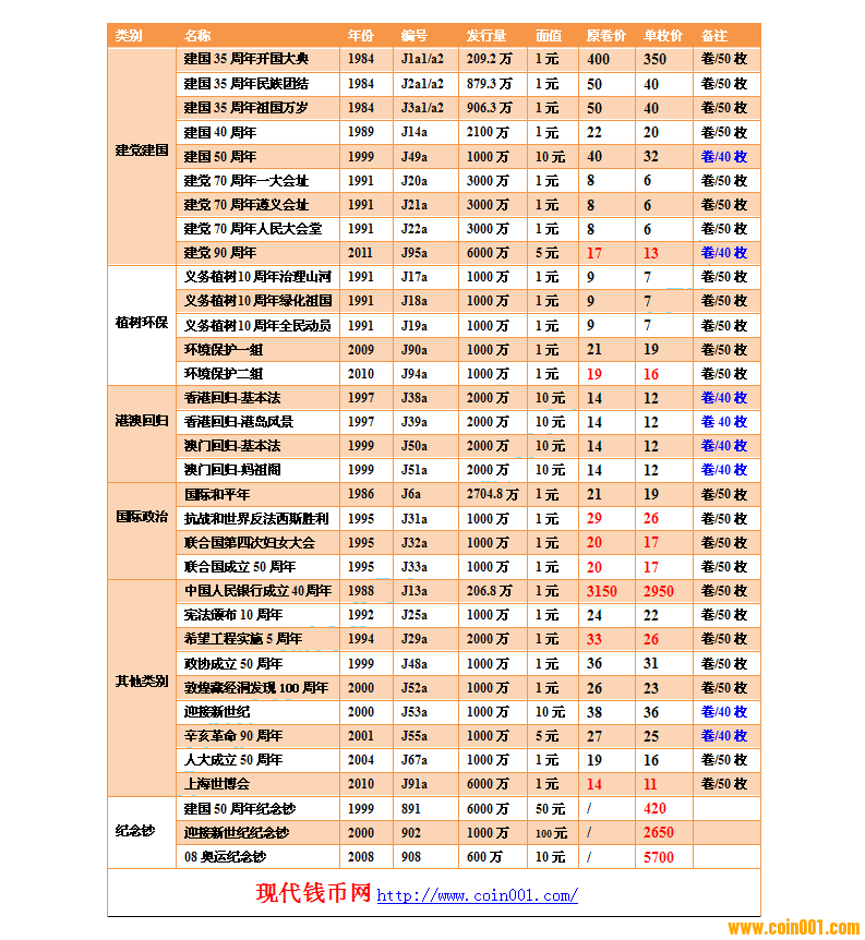 2015.6.13流通紀(jì)念幣報(bào)價(jià)