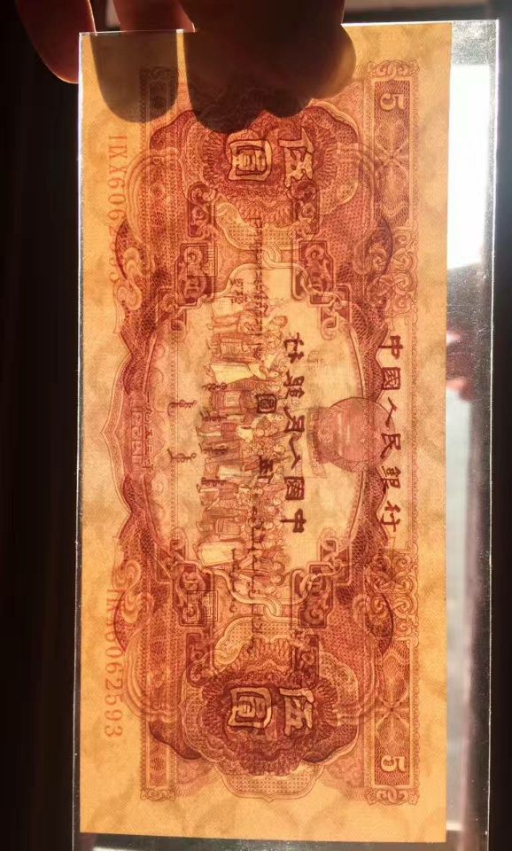 出全新品相紅五元一枚