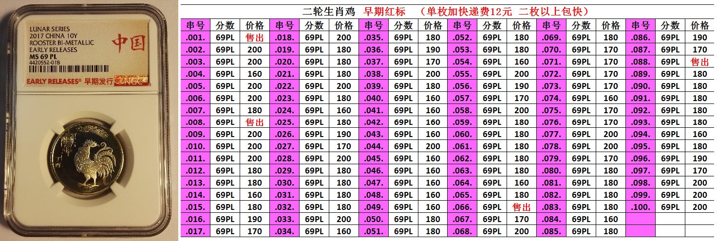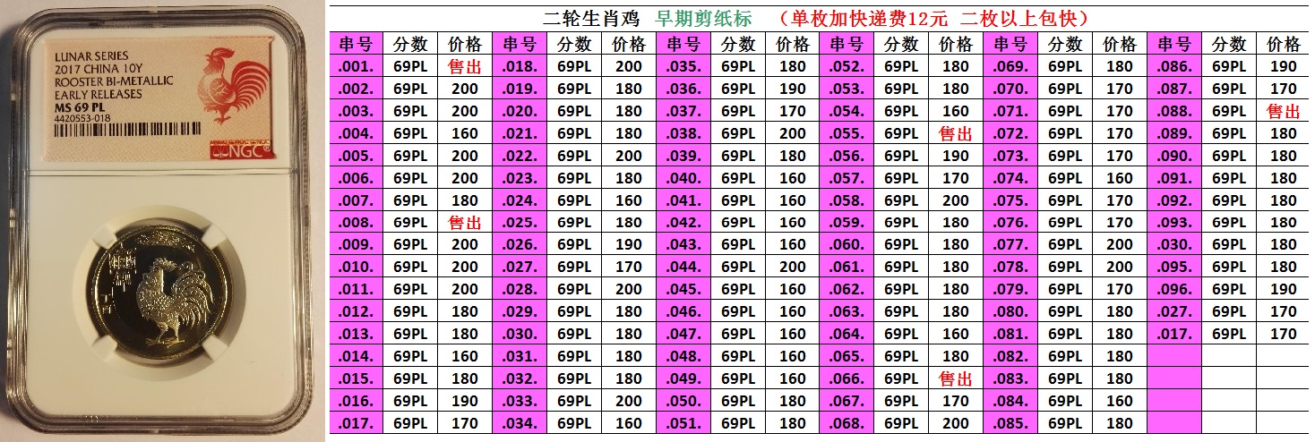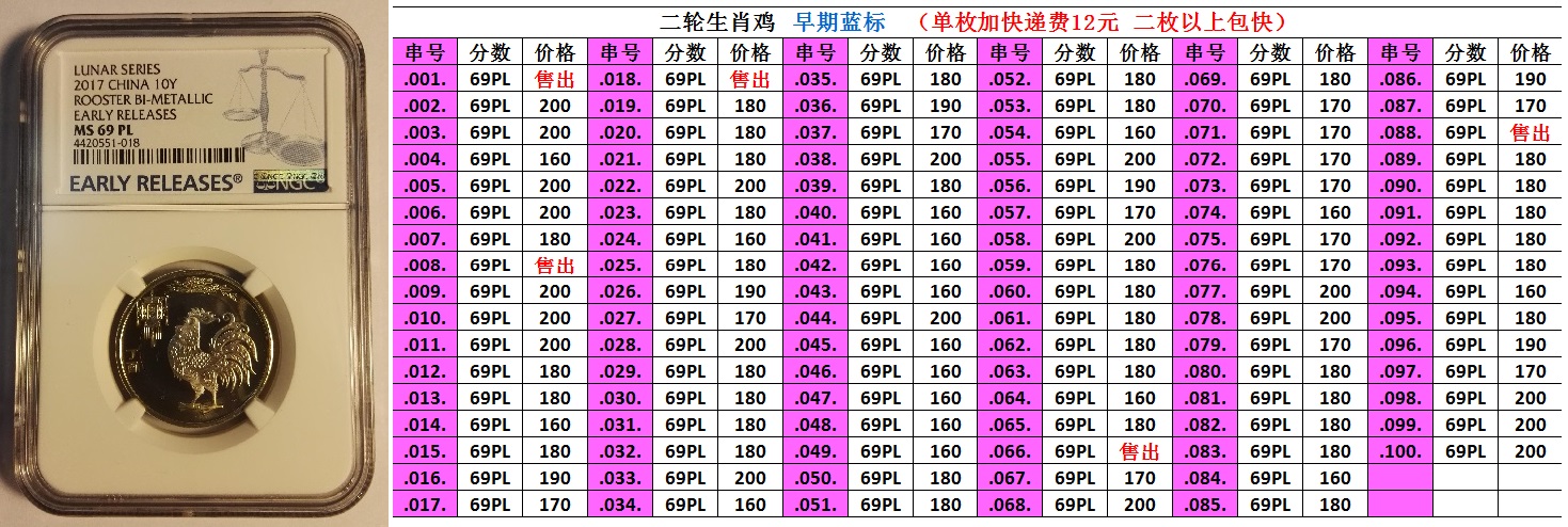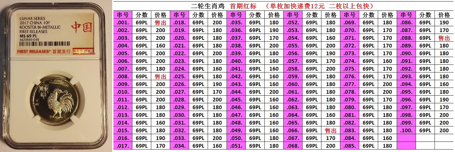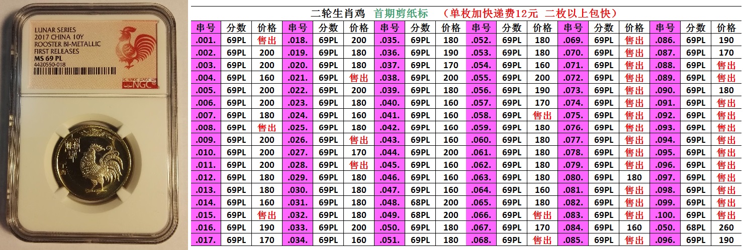 大,絕版標(biāo)簽評(píng)級(jí)雞未來(lái)很可能成為二輪生肖評(píng)級(jí)的龍頭,后市理應(yīng)高看一線,盡早入手收藏為宜,可謂雞不可失。首日雞已經(jīng)漲瘋了,