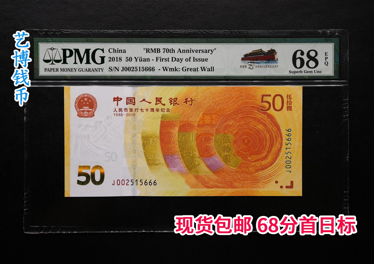 70周年紀(jì)念鈔 J002606666 首期天安門標(biāo) 66EPQ 售價(jià):2888元