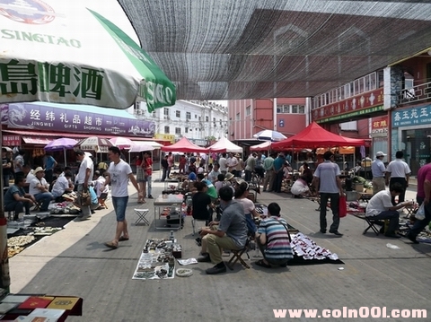 早就聽(tīng)說(shuō)青島人文、海灘美景如畫(huà)。趁著端午小長(zhǎng)假自由行去看看大海沙灘、德國(guó)建筑。行程安排必到青島文化收藏市場(chǎng)看看能否撿撿漏?高興去失望歸,市場(chǎng)較為零亂,各類(lèi)如玉器、圖書(shū)、工藝品比專(zhuān)營(yíng)郵幣卡多;找了半天才看見(jiàn)七八家主營(yíng)郵票、錢(qián)幣店鋪,規(guī)模不大,攤位購(gòu)買(mǎi)者也稀稀落落。沒(méi)有自己喜歡的東東隨便拍了幾張市場(chǎng)照片。中午與我神交已久的青島幣友盛情款待才彌補(bǔ)遺憾。
