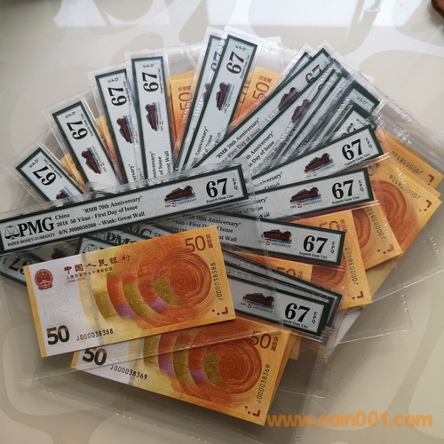 PMG評(píng)級(jí)67分,人*民*幣發(fā)行70周年紀(jì)念鈔,黃金鈔0000開門小號(hào),首日天安門標(biāo)簽!