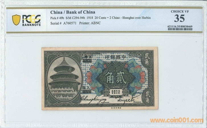 中國銀行1918年2角 哈 ..