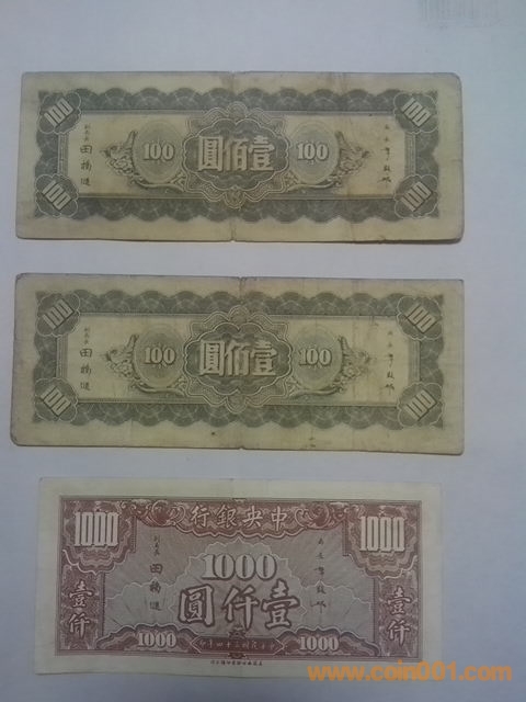 中央銀行一千元1張, ..