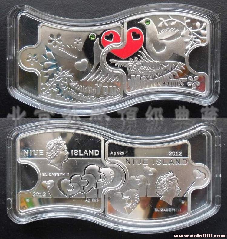 紐埃2012年情人節(jié)你和我水晶鑲嵌彩色拼圖精制紀(jì)念銀幣