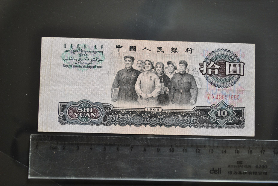三版大團(tuán)結(jié),實(shí)物尺寸:長(zhǎng):164mm,寬:72mm