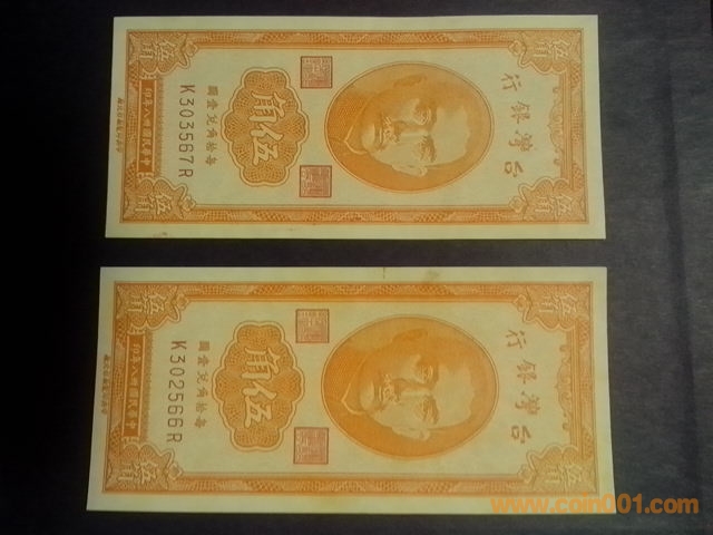 臺(tái)灣銀行1948年五角2張 ..