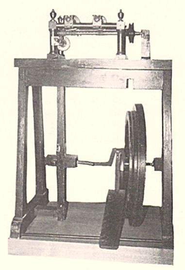 圖 164 由機(jī)械驅(qū)動的早期翻模壓機(jī),現(xiàn)在挪威 Kongsberg 的挪威皇家造幣廠做展示