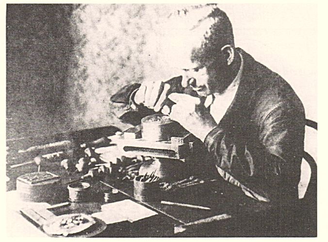 圖 166 一位總雕刻師在工作。據(jù)稱他的手腕動作要和小提琴家一樣靈活。