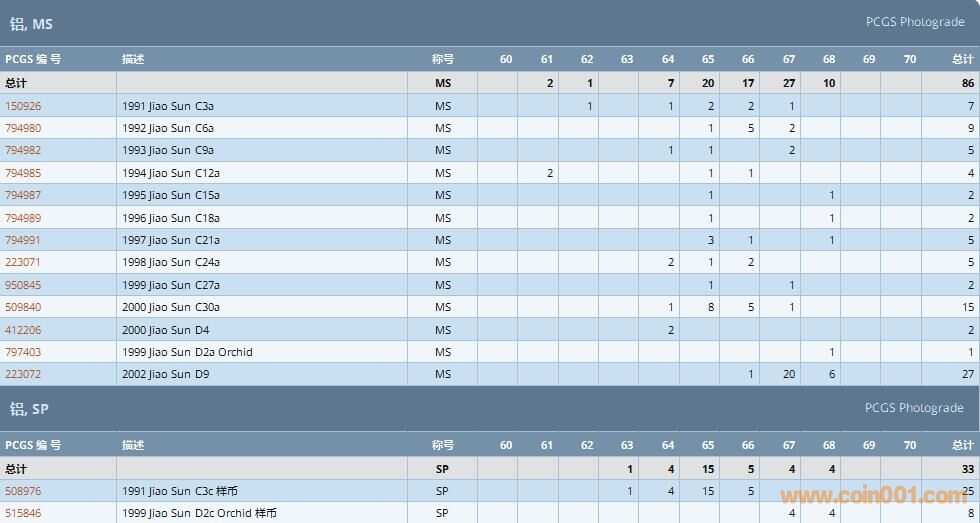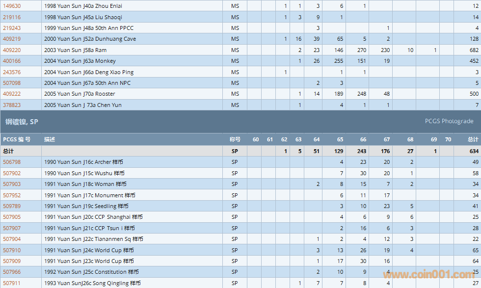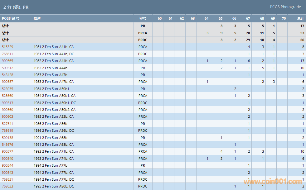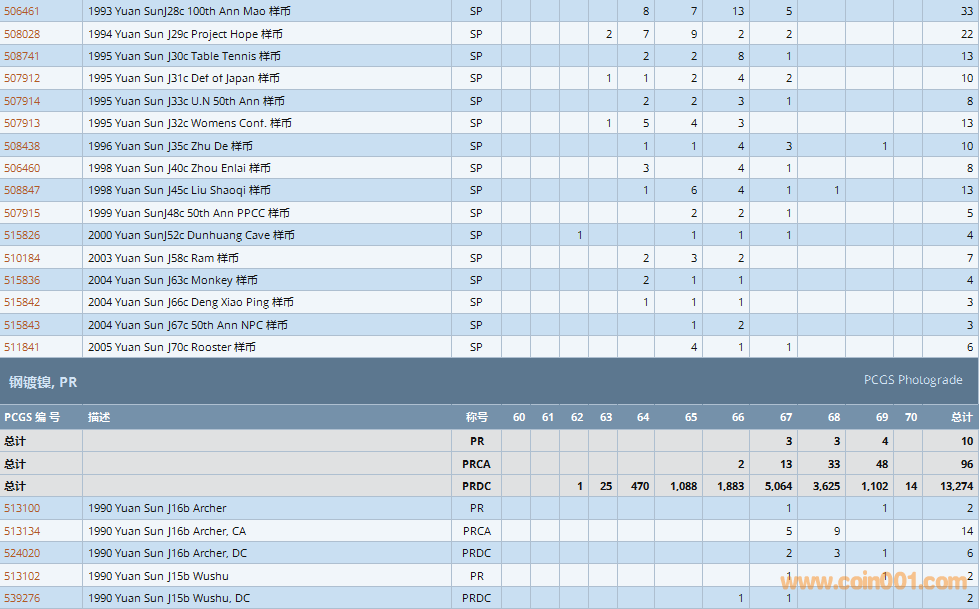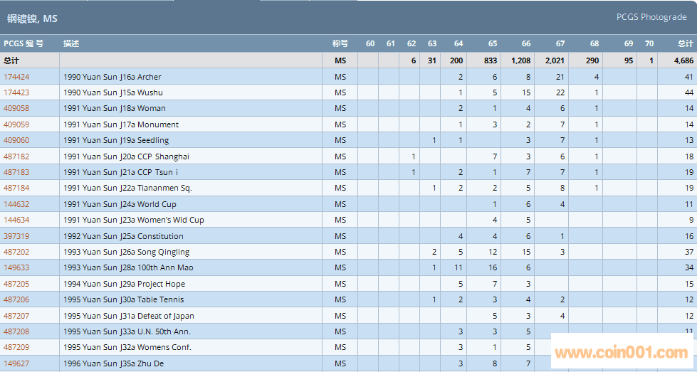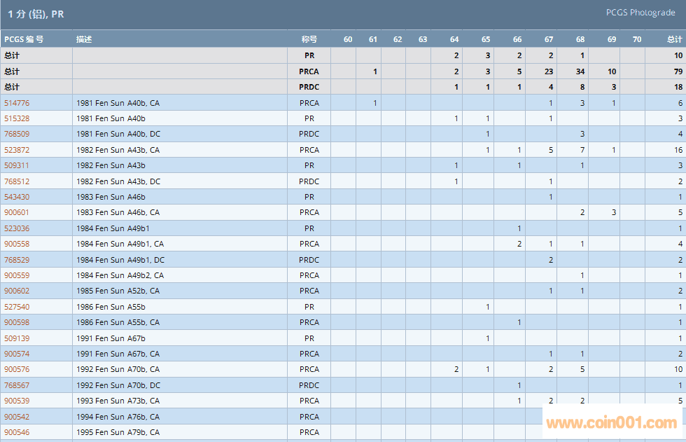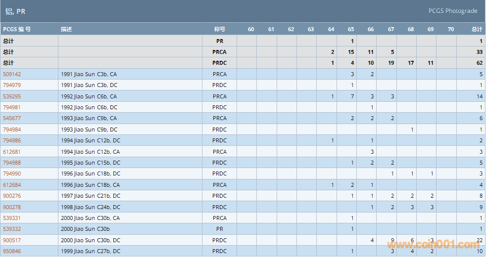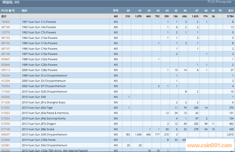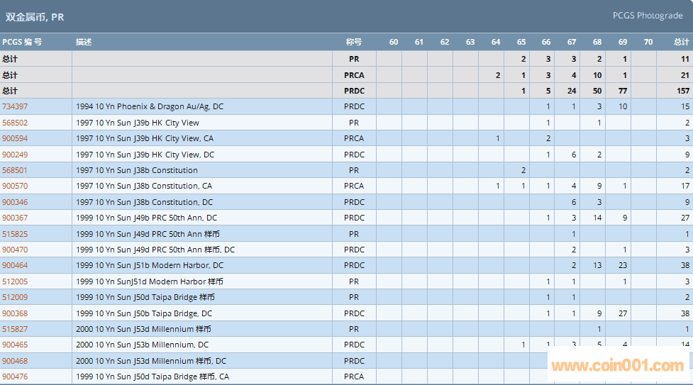 PCGS硬幣評(píng)級(jí)數(shù)量報(bào)告 ..
