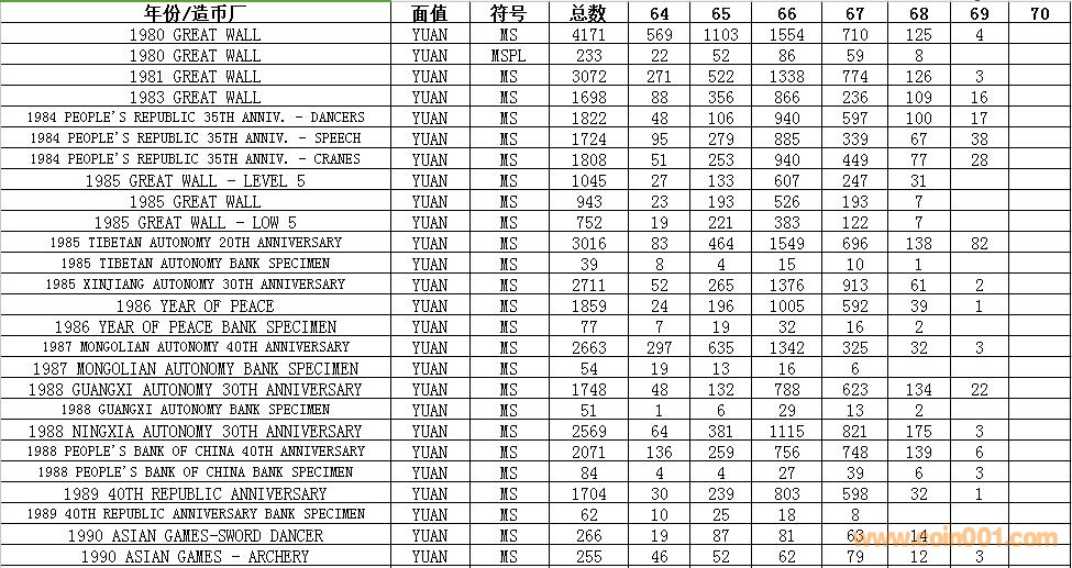 NGC硬幣評級數(shù)量報告 ..
