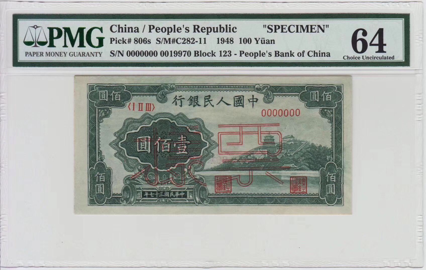 100元萬壽山票樣 PMG64