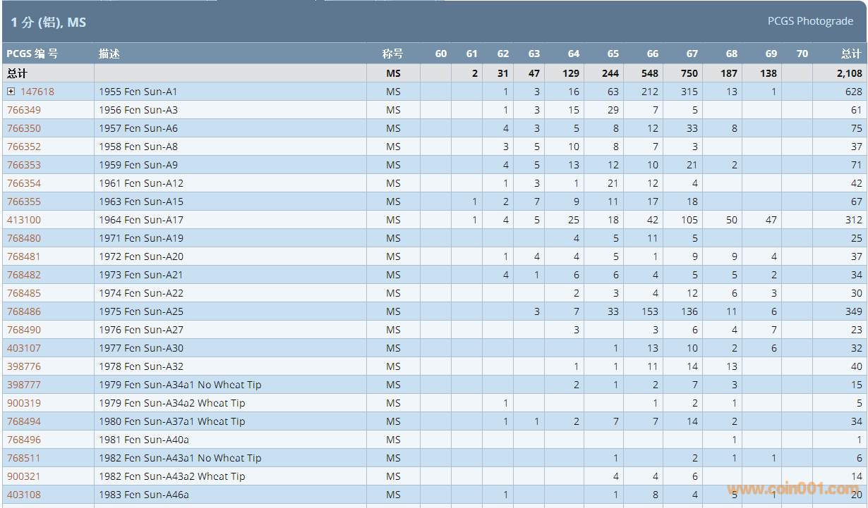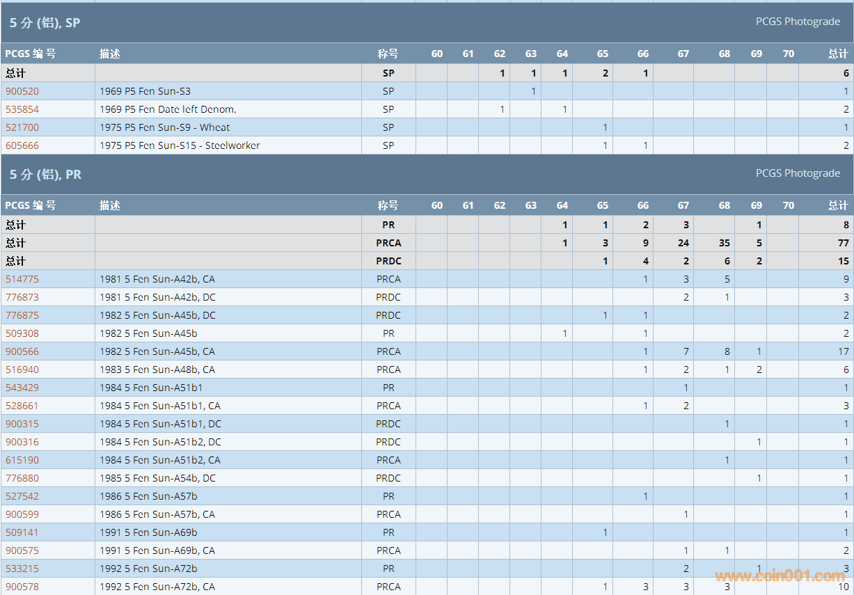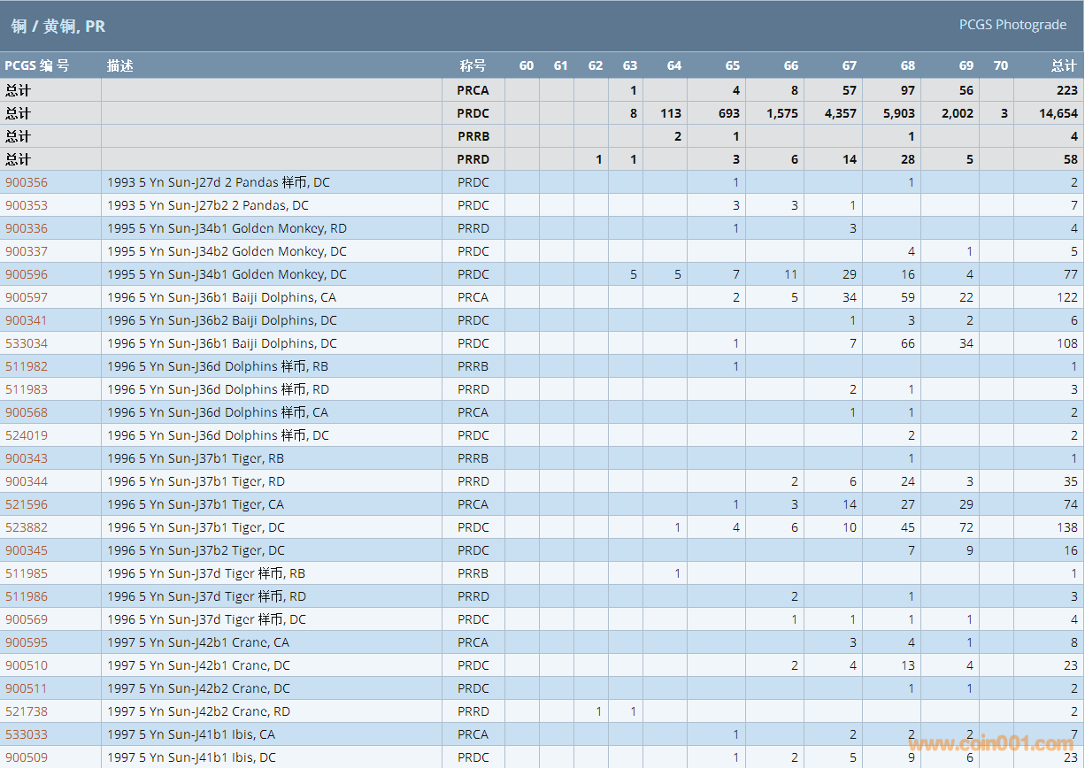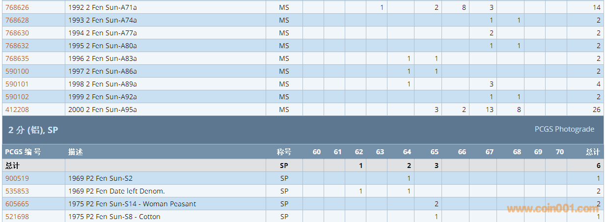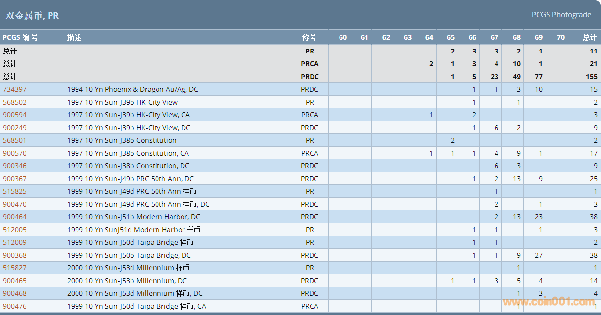 PCGS硬幣評級數(shù)量報告 ..