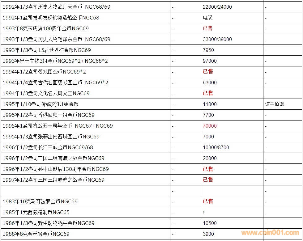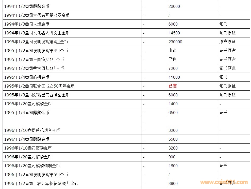 普通(精制)紀(jì)念幣交易