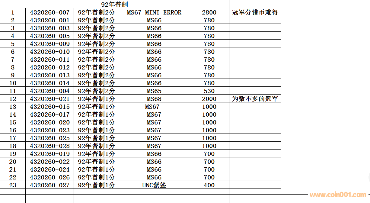低價(jià)出92年普制2分1分 ..