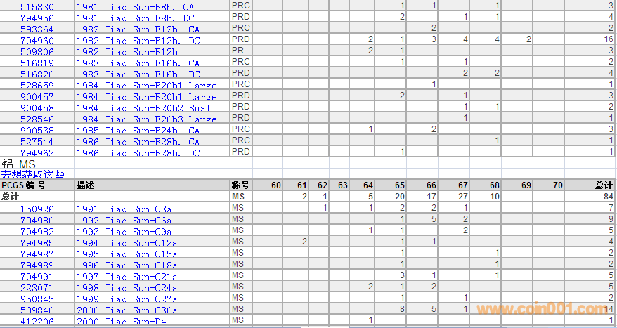 PCGS硬幣評(píng)級(jí)數(shù)量報(bào)告 ..