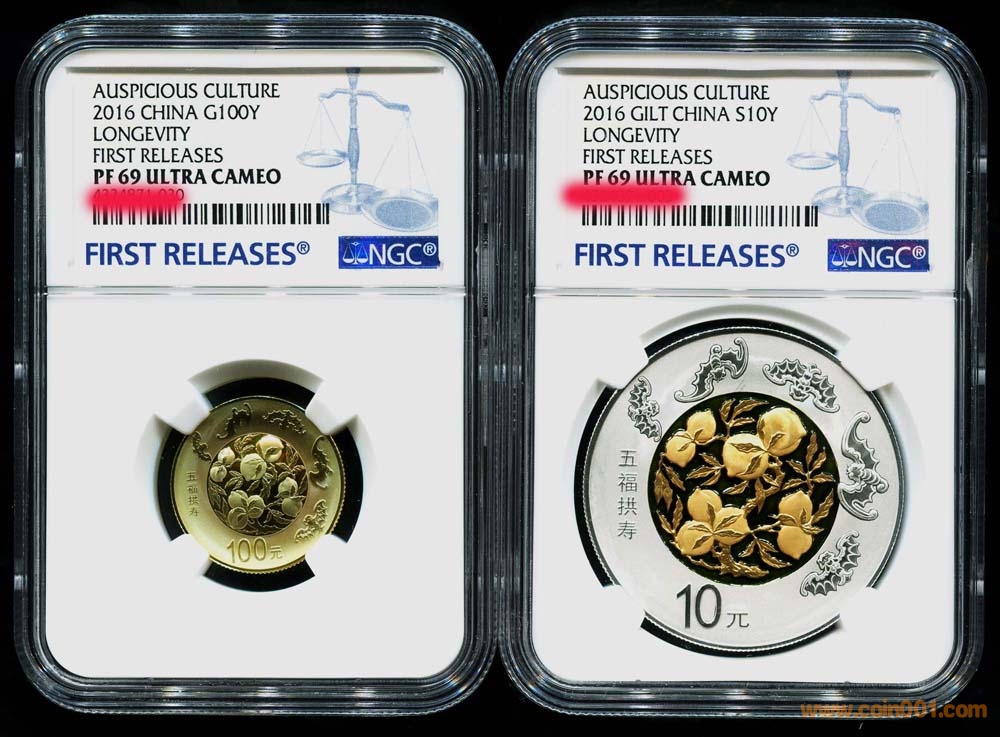 商品詳細照片請加下面聯(lián)系方式微信;18221336228 QQ;2630636757交易方式;淘寶、一塵、現(xiàn)代網、趙勇、錢幣天堂 16年 五福拱壽金銀 一套NGC PF69 ; 4700/套16年 五福拱壽金銀 一套NGC PF70 ;5800/套