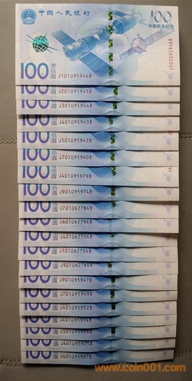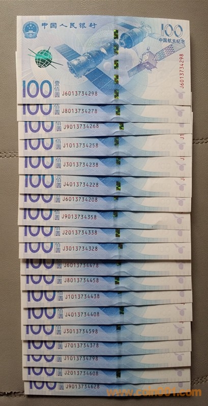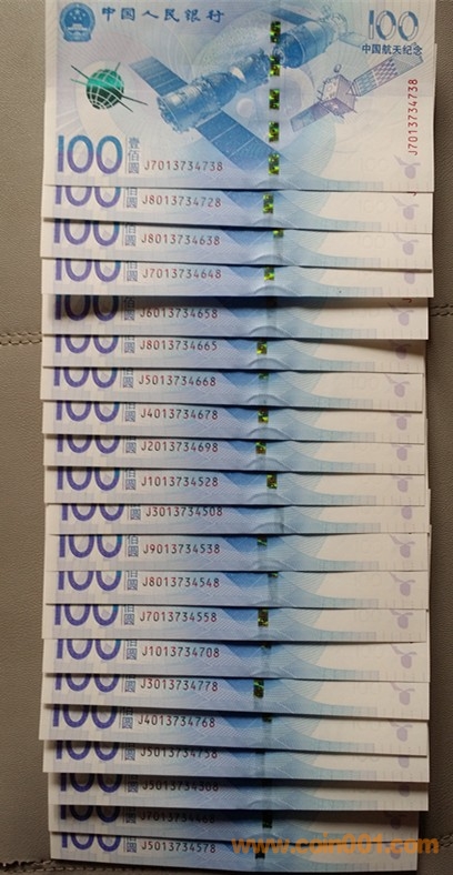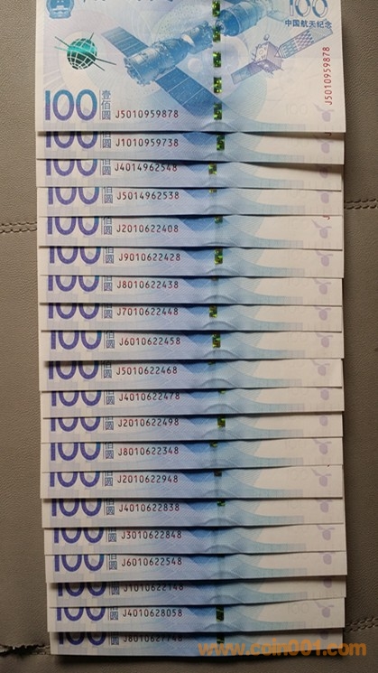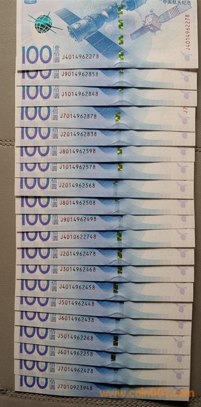 低價出航天鈔單尾8吉祥號2組,每組100張。