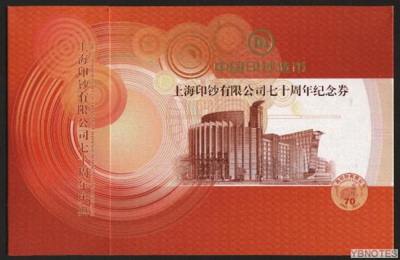 2011年上海印鈔廠成立70周年紀(jì)念測試鈔--冊裝版