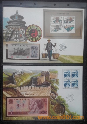 中國1980年1元紙幣1981年1元硬幣長城幣封 360元