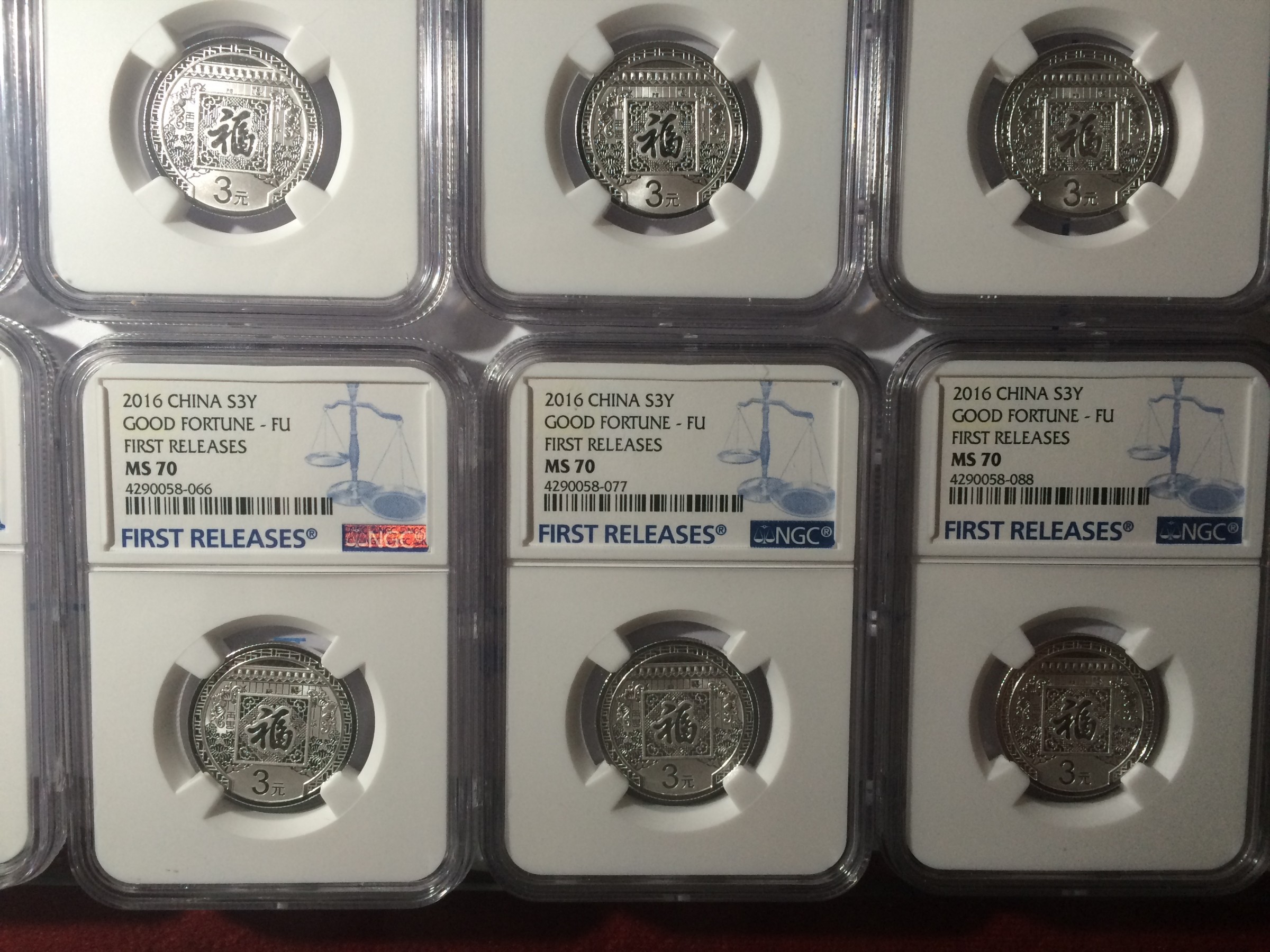 2016賀歲福字NGC首期發(fā)行(First Releases)70分評級號碼011、022、033、044、055、066、077、088. 一共8枚不單出 不拆開賣2000元/枚,順豐到付 ,款到第一時間發(fā)貨!多網同售,不常在線,請電聯確認!謝謝支持!