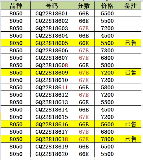 出售8050 PMG66-67E &nb ..