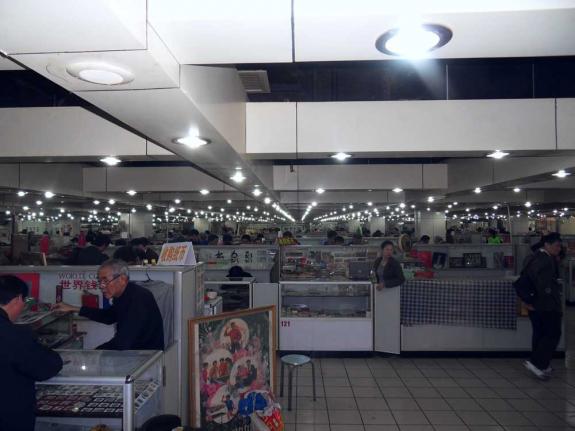 木耳進去后,還碰到了無錫的老陳、老華和小陳。等我評完級后,和他們一去去了盧工。之前在北京聽徐進說上海市場比北京大。我還不相信。結(jié)果到了盧工才發(fā)現(xiàn)市場的規(guī)模絲毫不遜于北京馬甸。如果算上云州古玩城(北京除馬甸外的所有市場加起來還沒有云州大)上海確實是當(dāng)之無愧的中國第一市場了。木耳自認(rèn)為天天在馬甸也算見過錢幣市場的大場面,但也被盧工琳瑯滿目的錢幣深深吸引了。不過有一點、是上海市場與北京市場的不同就是,上海的盧工和云州的商戶隔斷都比較矮,一眼就能看到整個錢幣市場。而馬甸想要全部看全,則要一點一點的去轉(zhuǎn)了。而且馬甸市場里面不讓抽煙,而盧工抽煙好像沒人管。呵呵。廢話不多說,開始逛盧工。