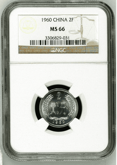 1960年貳分一枚 N盒ms 66
