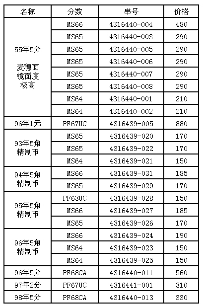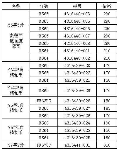 引用 引用第12樓司馬如意于2016-05-09 16:09發(fā)表的 : 電聯(lián)價格確認96,98年5分68CA2枚。賣家包幣盒完好。