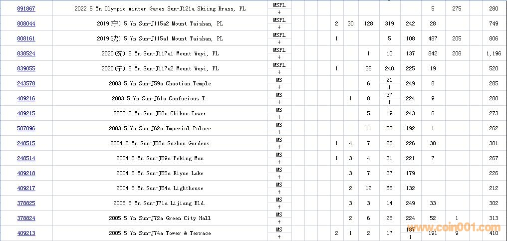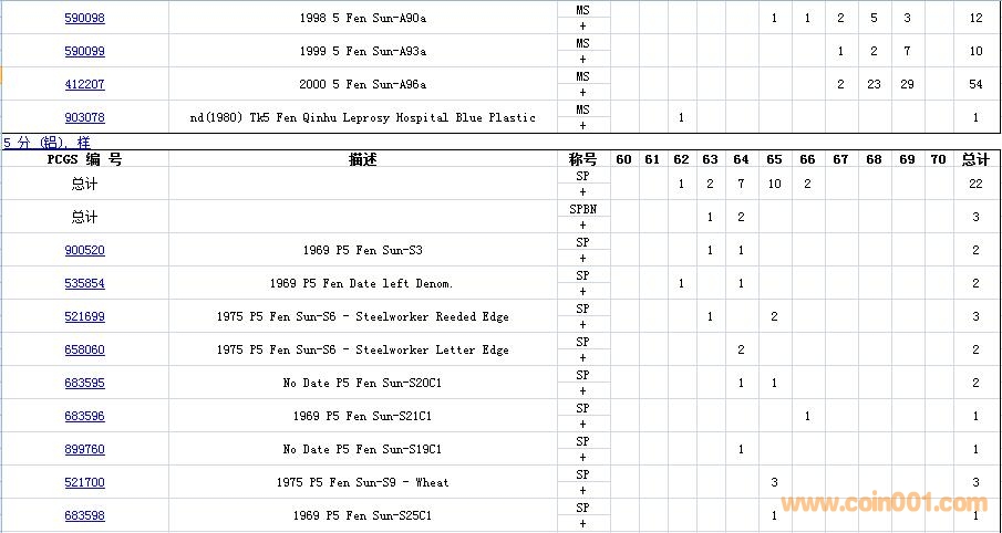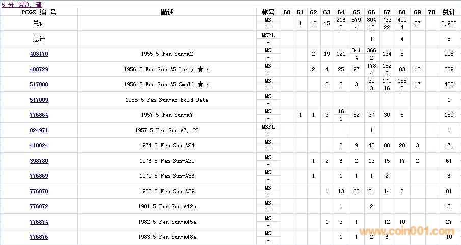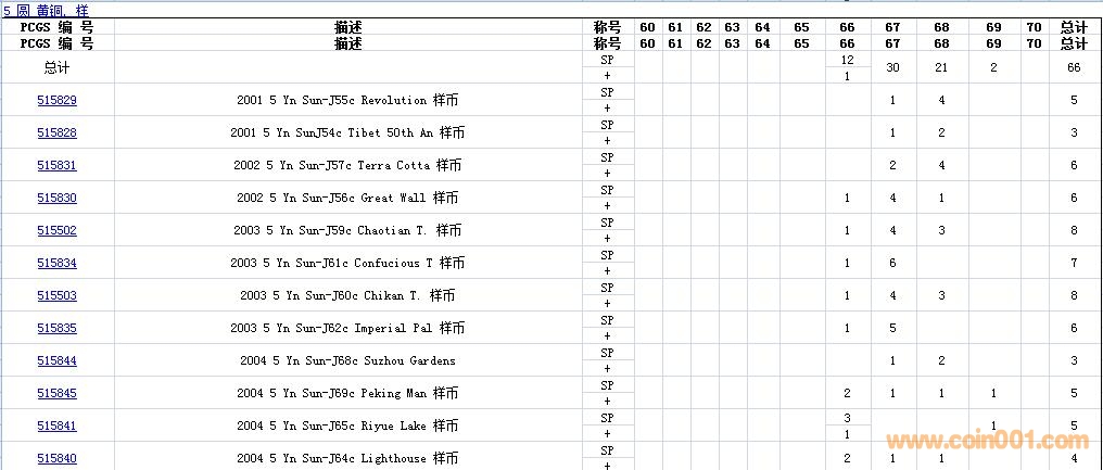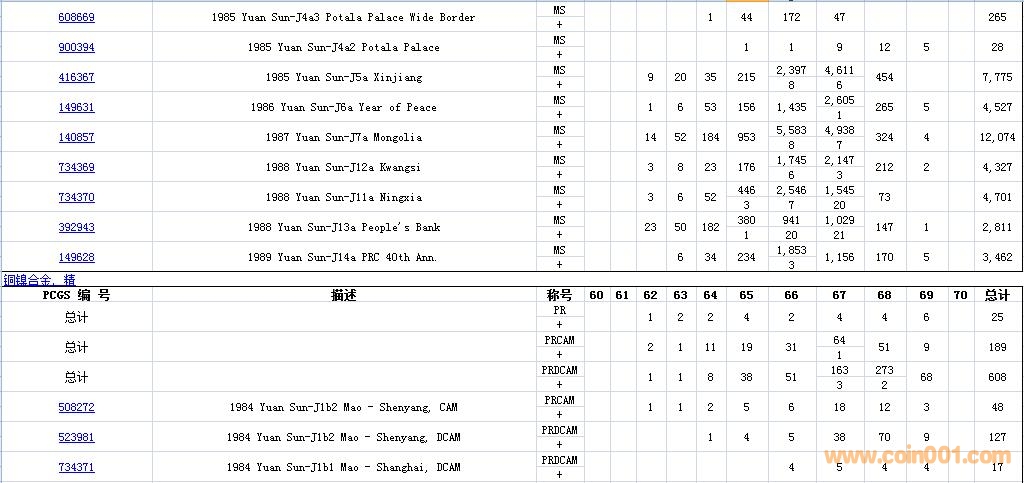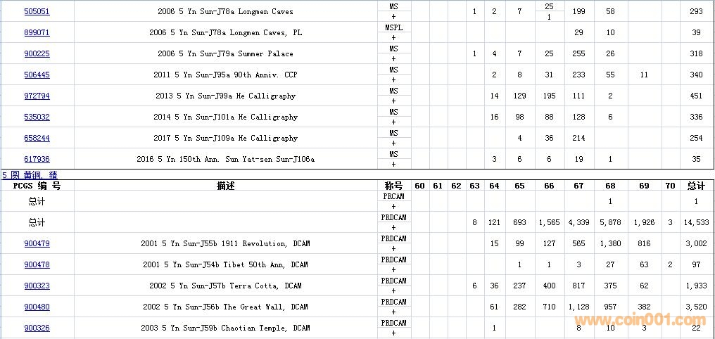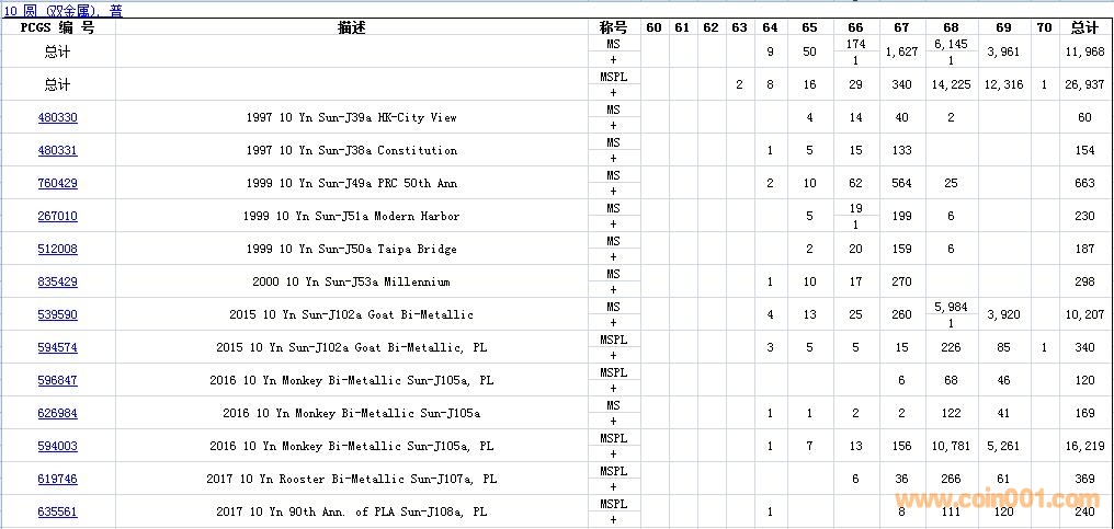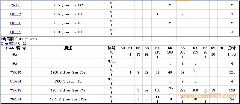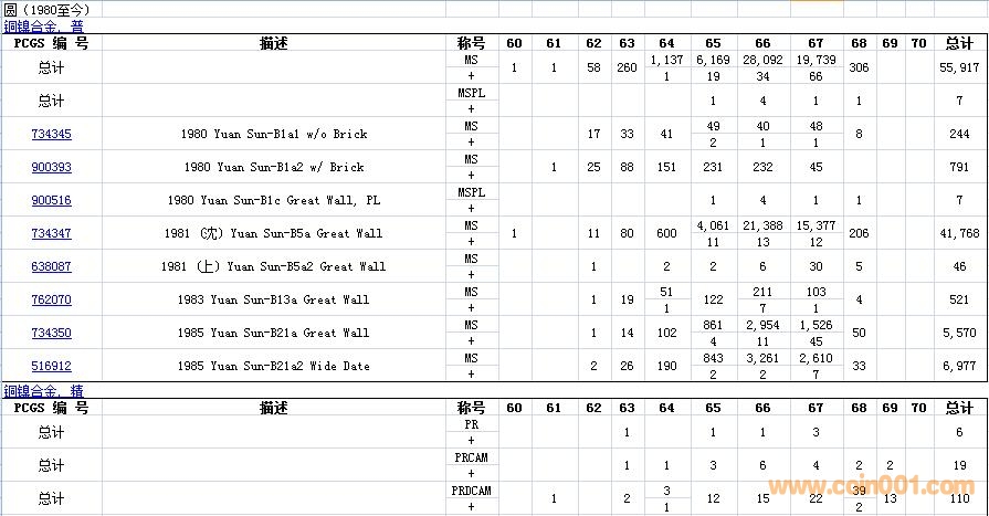 PCGS硬幣評級數(shù)量報(bào)告( ..
