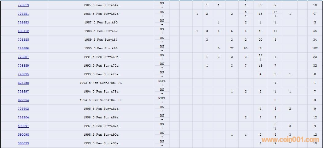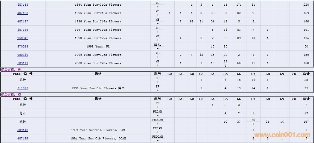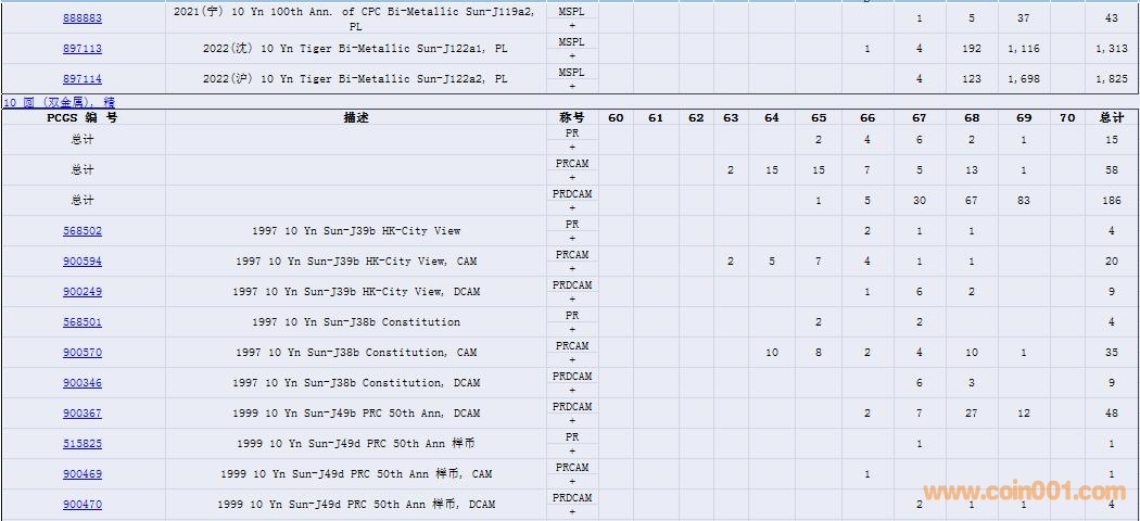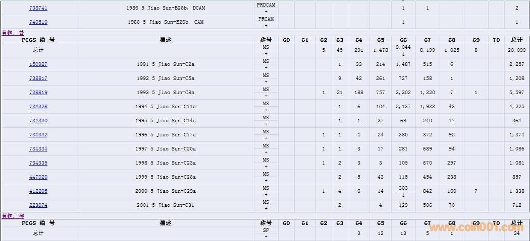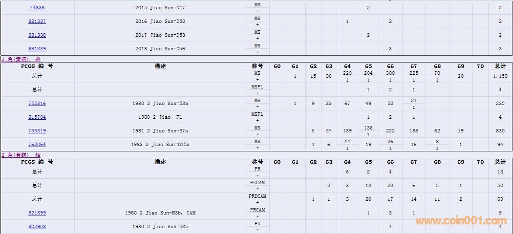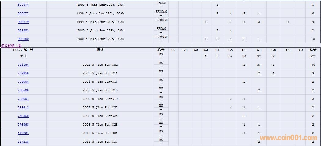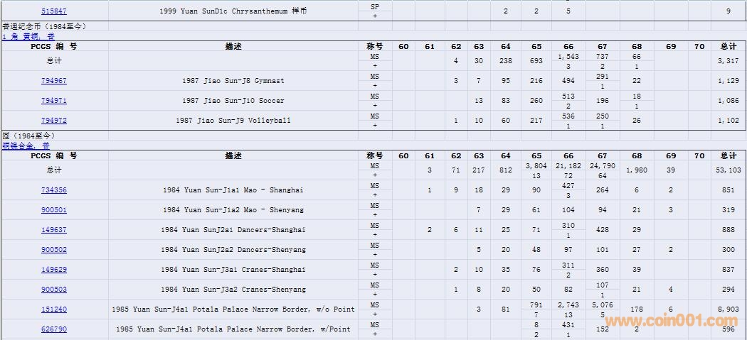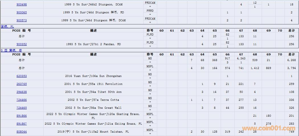 PCGS硬幣評(píng)級(jí)數(shù)量報(bào)告( ..