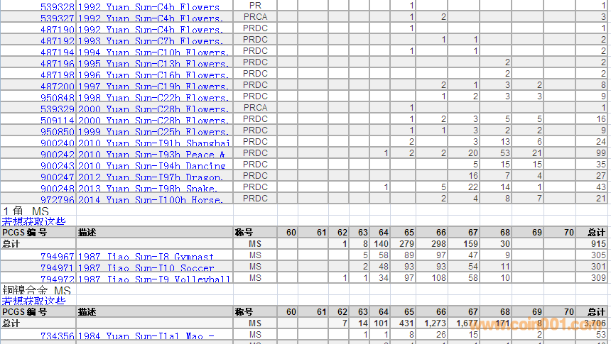 PCGS硬幣評(píng)級(jí)數(shù)量報(bào)告 ..