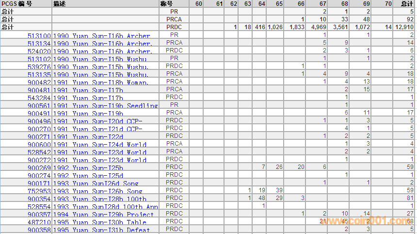 PCGS硬幣評(píng)級(jí)數(shù)量報(bào)告 ..