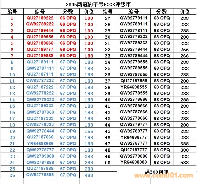 8005兩冠豹子號PCGS評級 ..