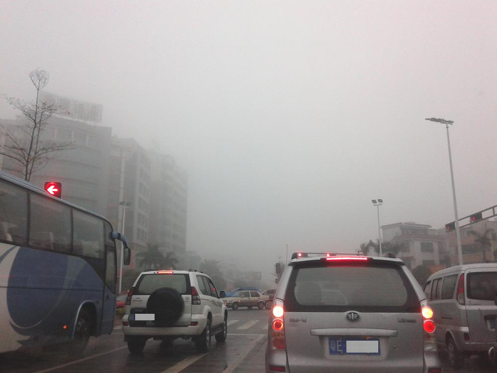 今天早上佛山出現(xiàn)罕見的濃霧天氣,能見度可能只有一、二百米,以往這個(gè)季節(jié)也常常出現(xiàn)大霧天氣,但是像今天這樣濃密的大霧是很少有的,忍不住在上班路上和辦公室內(nèi)拍了照片,以資分享