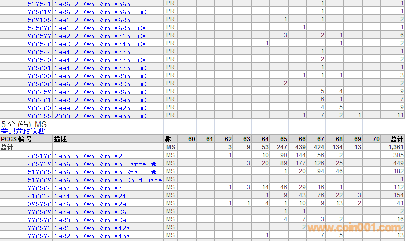 PCGS硬幣評級數(shù)量報(bào)告 ..