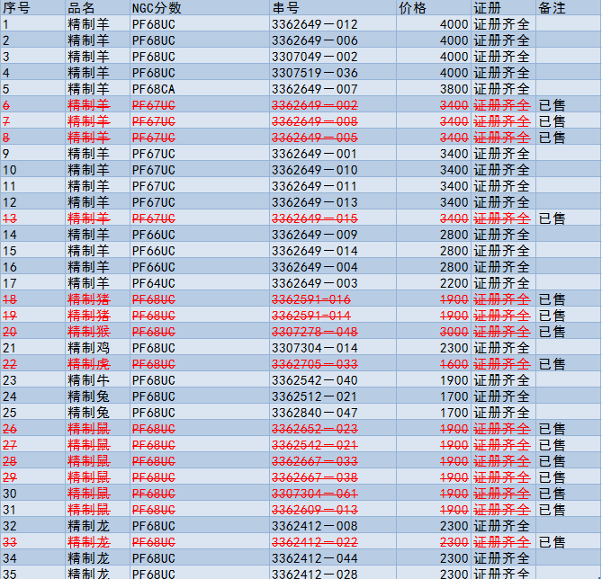 引用 引用第16樓王寶寶于2016-04-13 12:26發(fā)表的 :電聯(lián)確認(rèn)67分羊4枚(3362649-002、3362649-005、3362649-008、3362649-015),68分鼠4枚(3362652-023、3362542-021、3307304-061、3362609-013),謝謝!??!