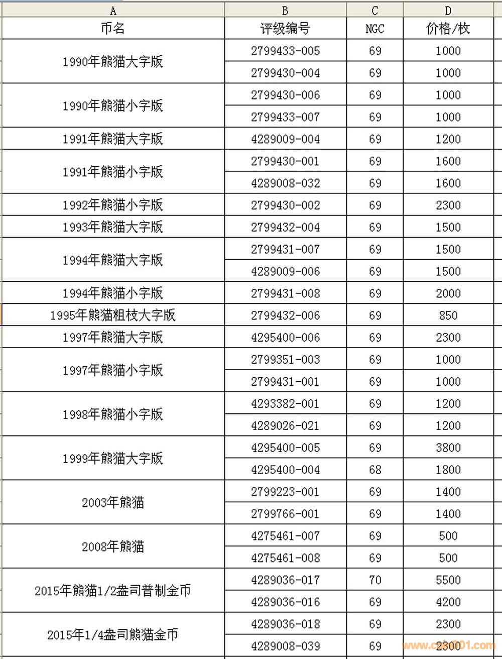 售;1989年熊貓、1990年 ..