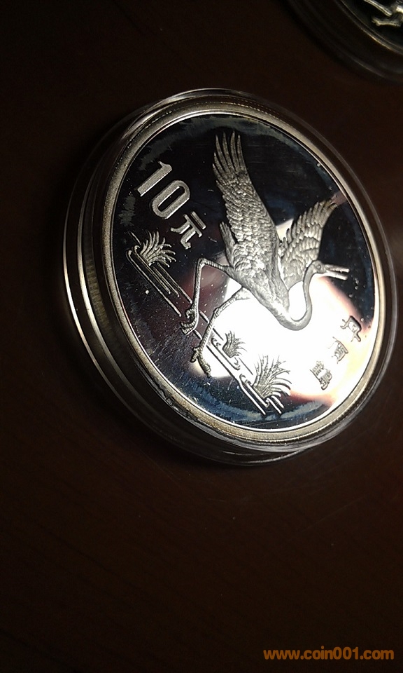 出1989年珍稀動(dòng)物第二組(丹頂鶴 梅花鹿)一套2枚精制銀幣 實(shí)鑄量10005枚,成色92.5%銀。重量25克/枚,直徑38mm,此幣可查評(píng)級(jí)幣數(shù)量僅百余枚,較為罕見,蓋幣有一個(gè)塑料幣盒上蓋有缺損,幣正面有一些自然硫化痕,斜對(duì)燈光仔細(xì)看才可發(fā)現(xiàn)部分幣面有極細(xì)的絲狀痕(如圖),標(biāo)價(jià)1400元。