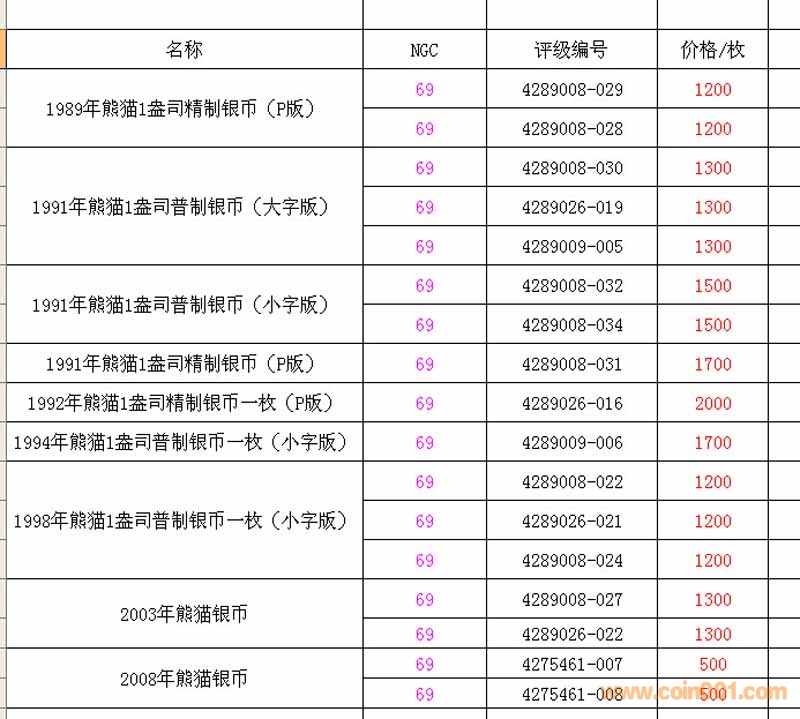 售:1989年精致熊貓 199 ..